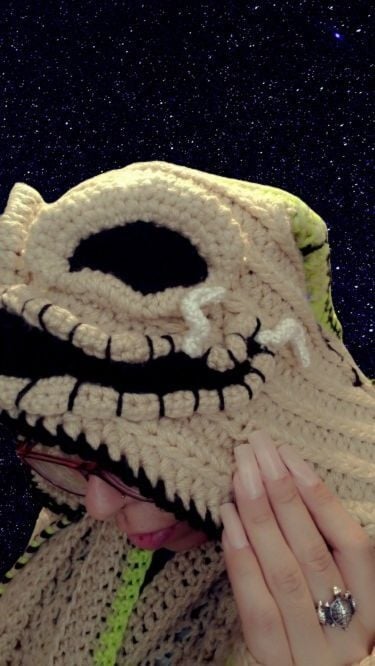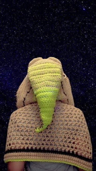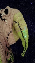 Crafted with 100% acrylic yarn and made using doubled strands throughout for extra durability and structure, this spooky-fun hoodie doesn’t just look amazing — it holds up beautifully. The tail is stuffed with polyfill for a full, plush shape and features optional built-in lights for that extra Oogie glow (just message me if you prefer yours without lights).