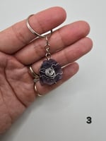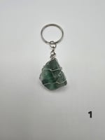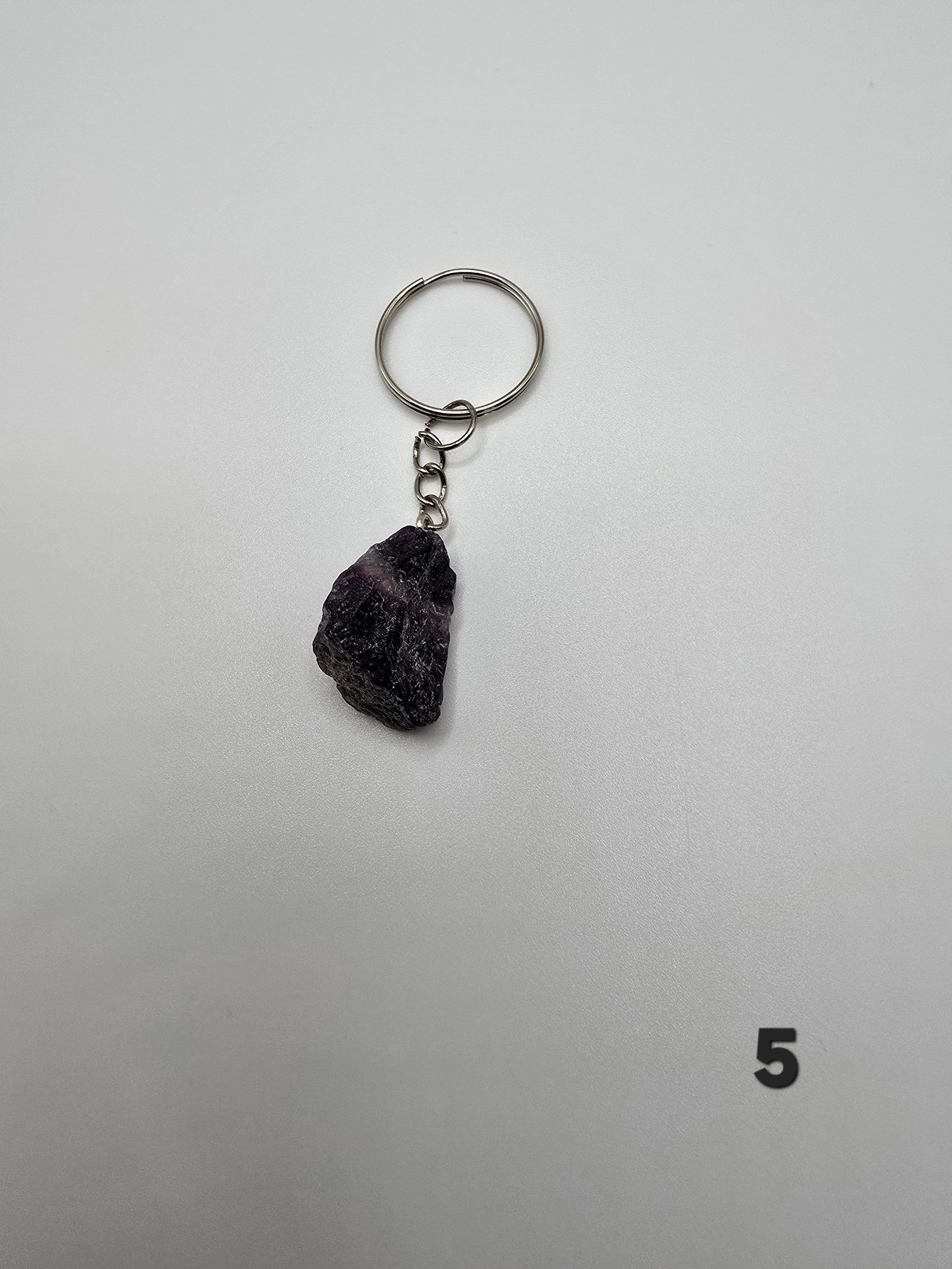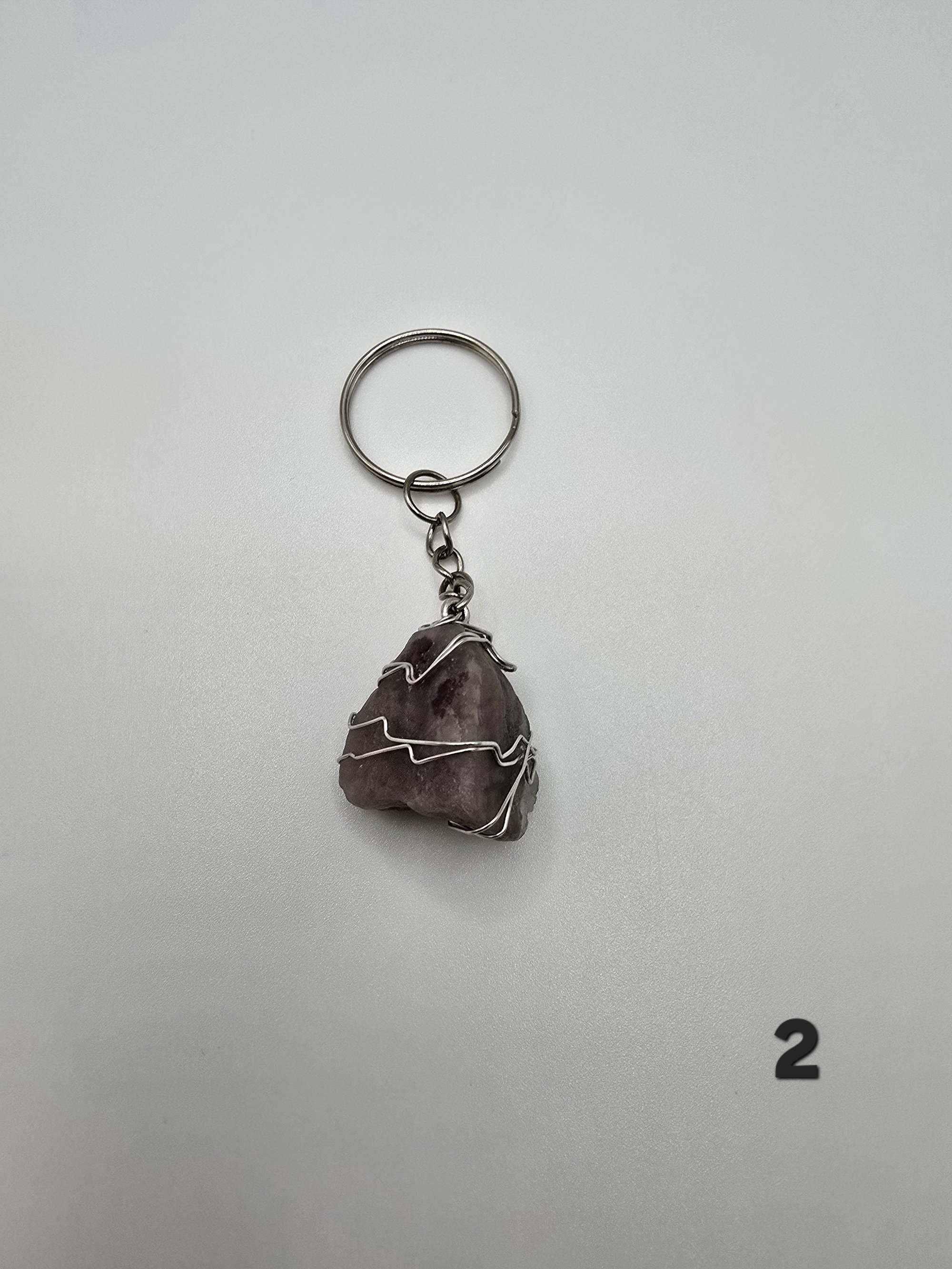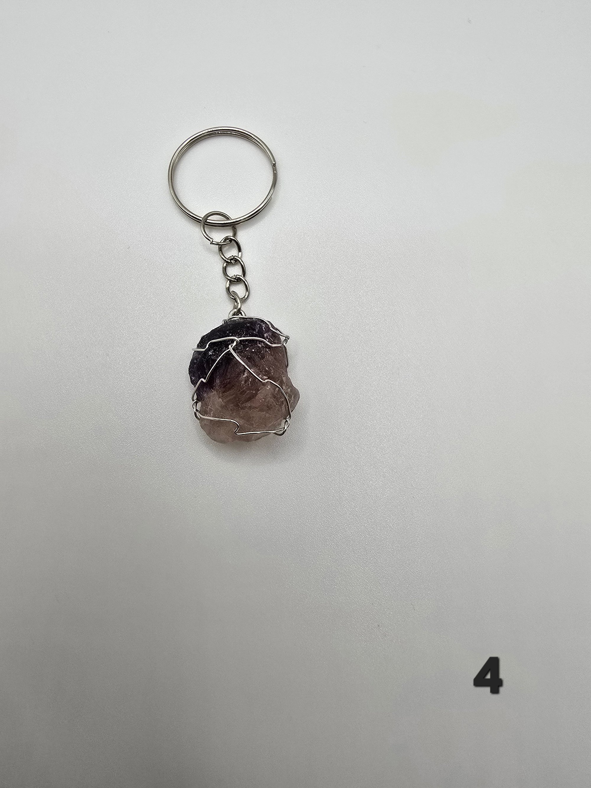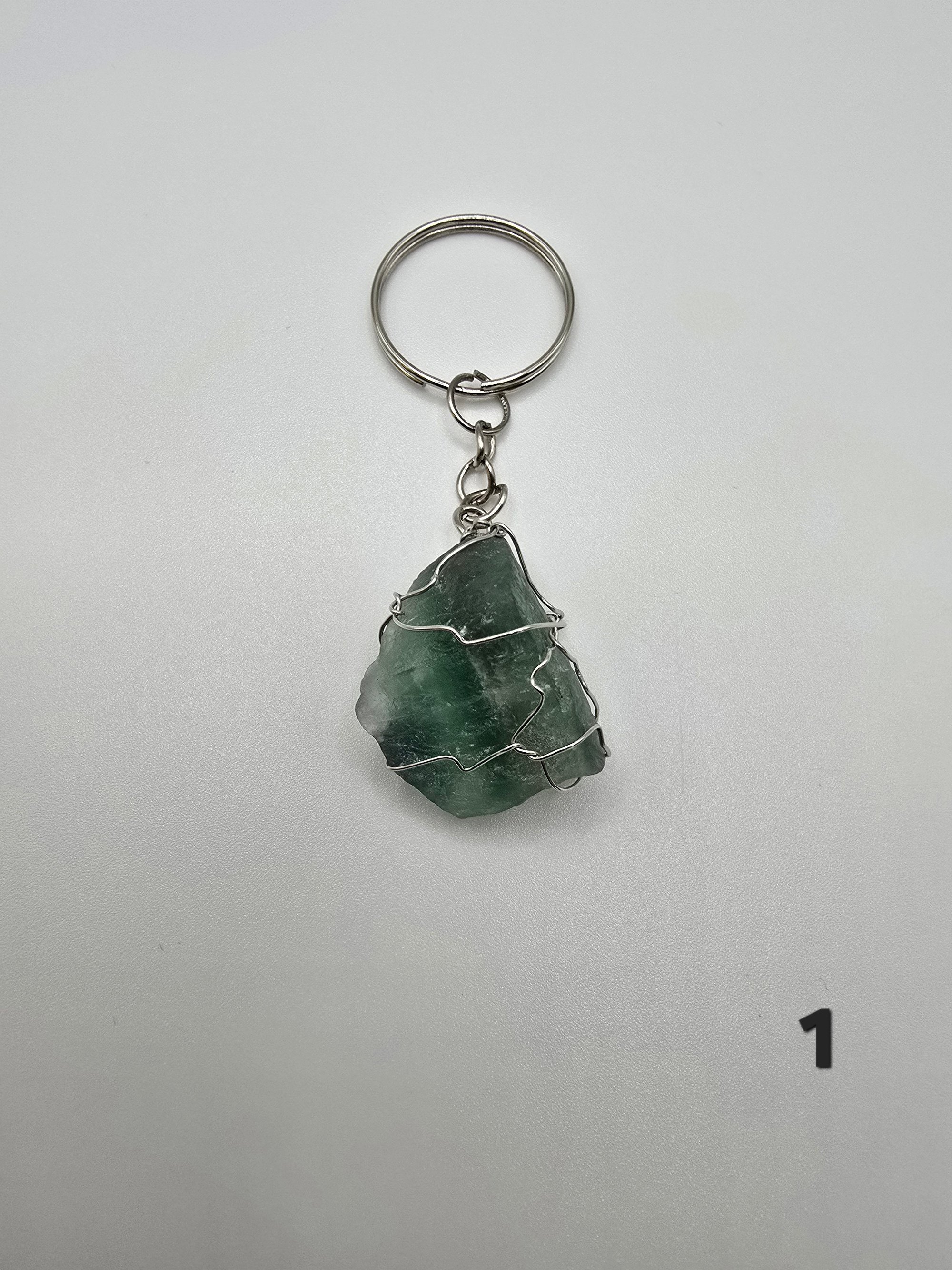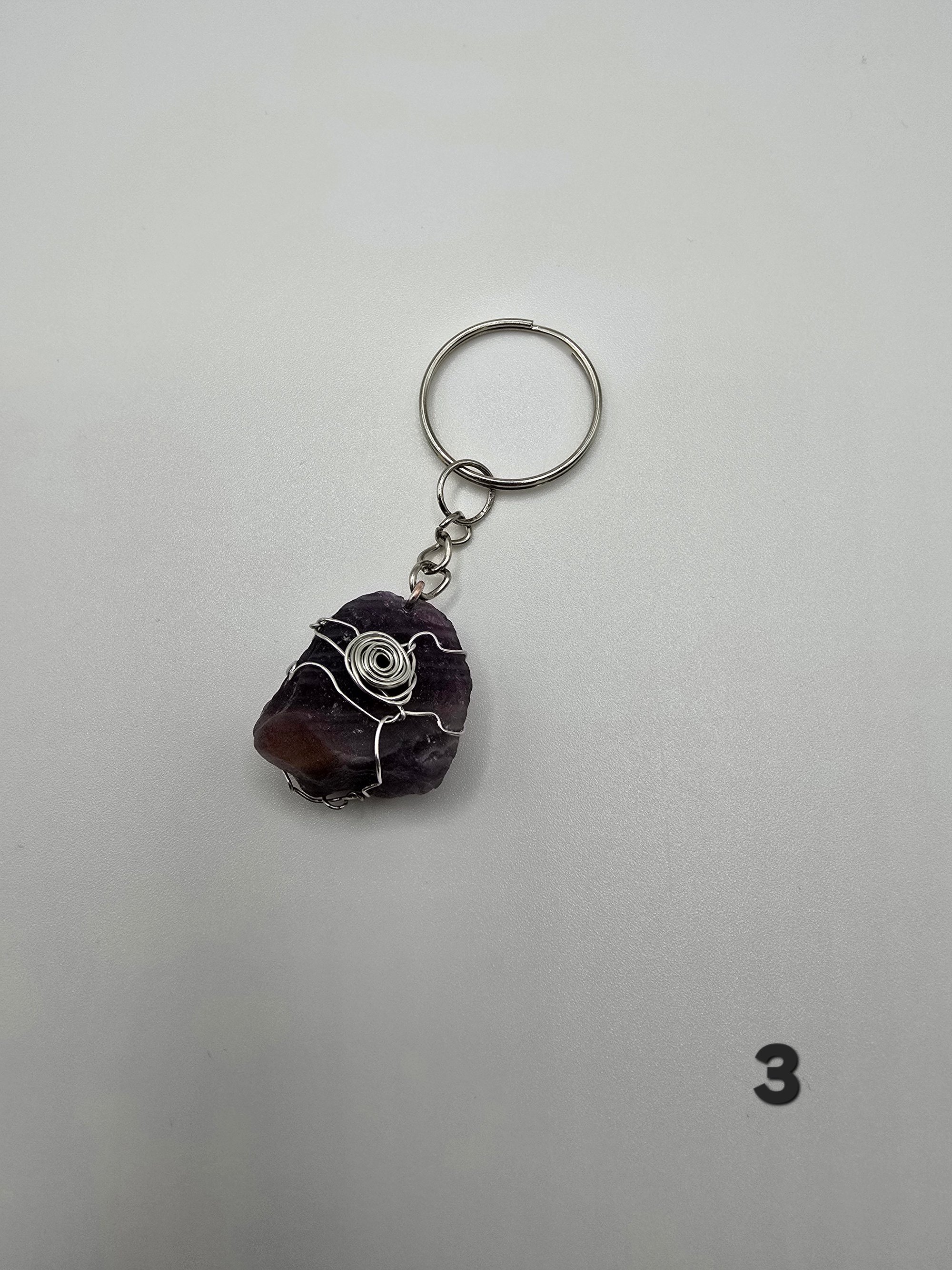 Carry balance and clarity wherever you go with this handmade fluorite crystal keychain. Featuring a raw fluorite stone wrapped in simplistic silver wire, this piece highlights the natural beauty of the crystal without overpowering it.