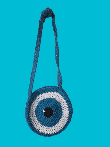 Carry style and protection all in one with this handmade Mystic Eye Crossbody Bag. Measuring 8.5 inches in circumference, this unique piece is crocheted entirely from soft cotton yarn for a lightweight yet durable finish. Designed without a liner, it maintains its natural, flexible texture while showcasing the bold, eye-catching design.